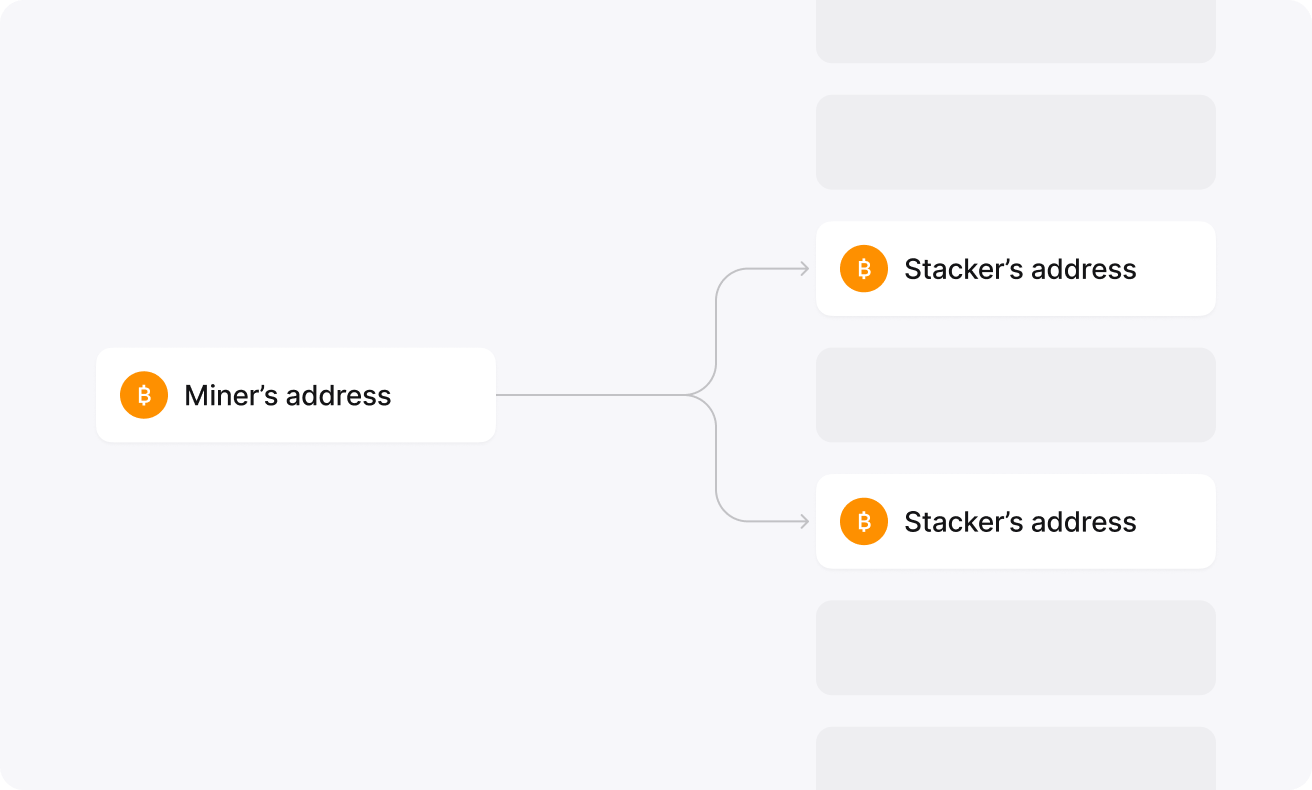 2. **Commitment**: registered miners transfer Bitcoin to participate in the election. Committed BTC are sent to a set participating STX token holders, aka stackers.